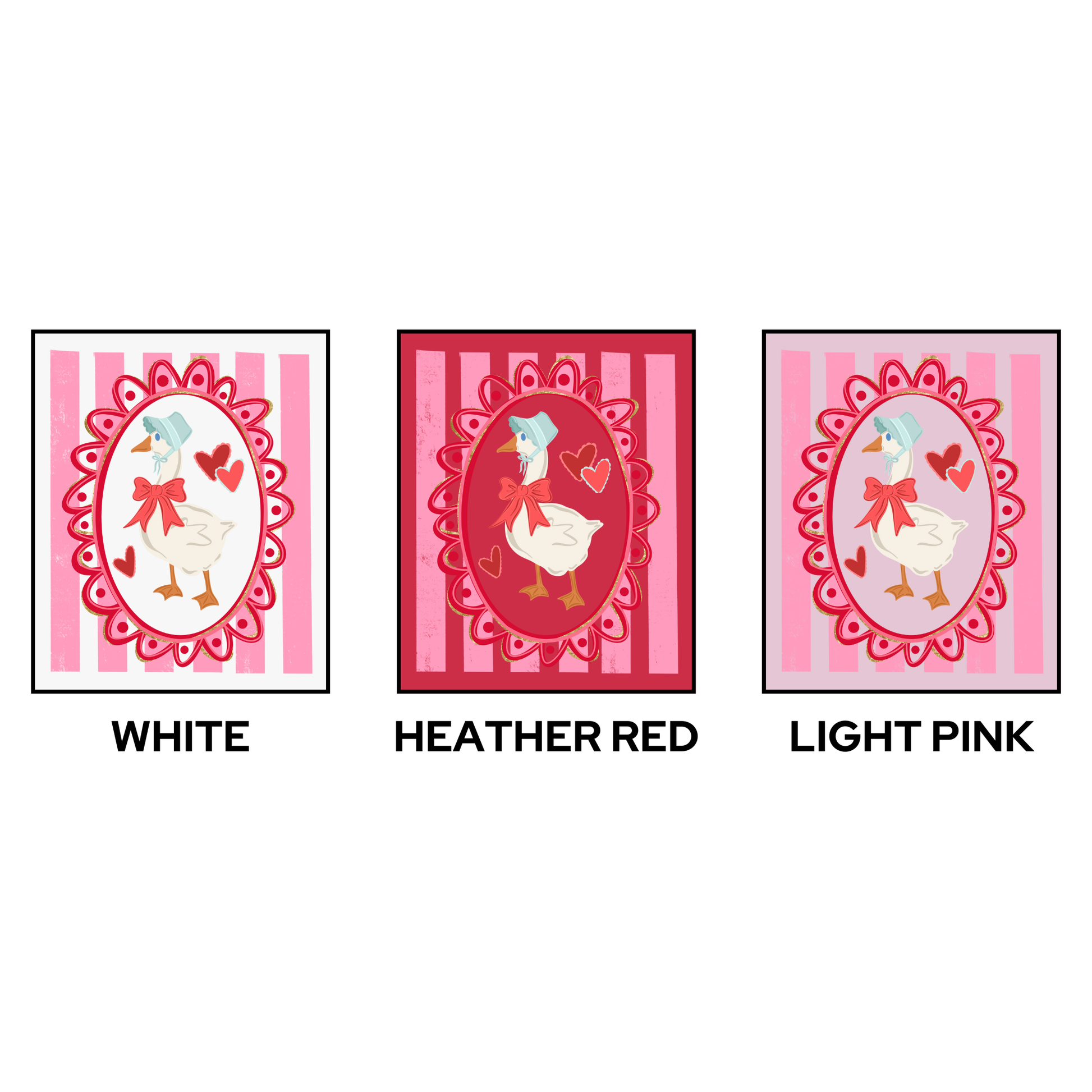 Adult Colors: White, Heather Red, Light Pink